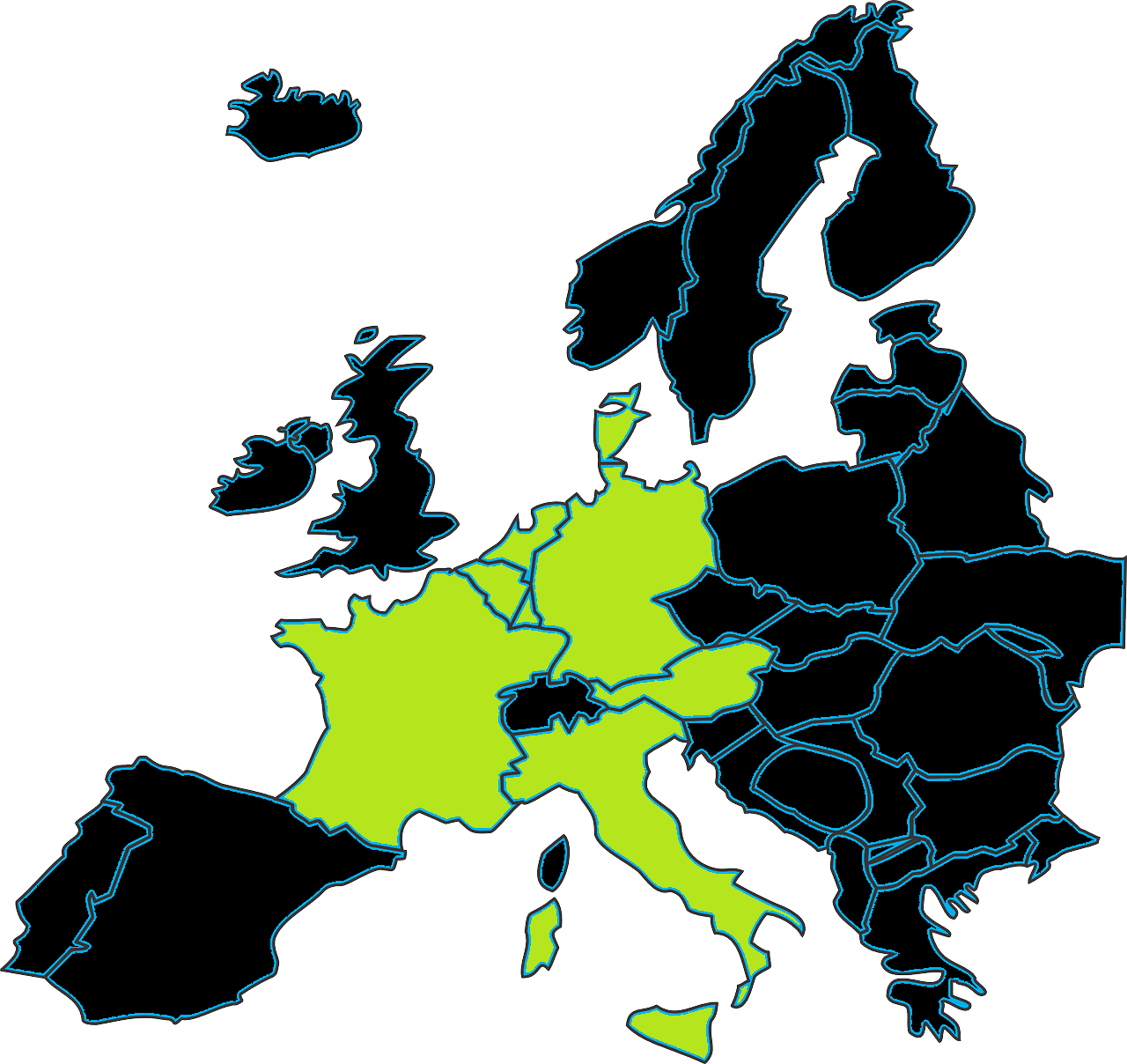 Allemagne, Autriche, Belgique, Danemark, France métropolitaine, Luxembourg, Monaco, Pays-Bas, Italie