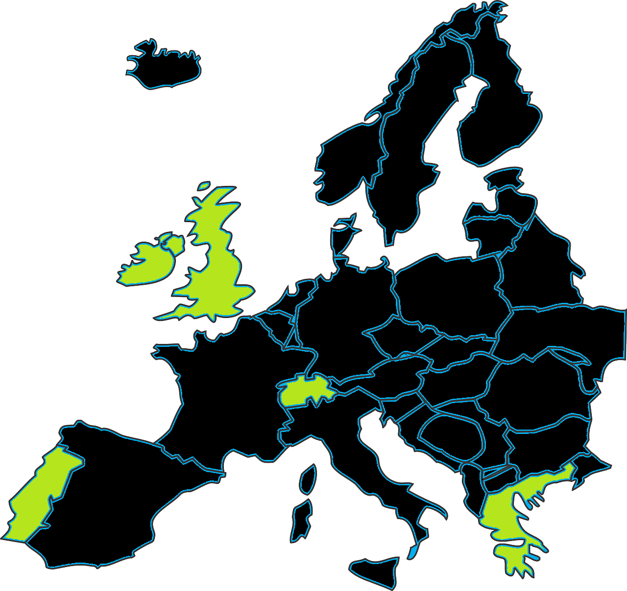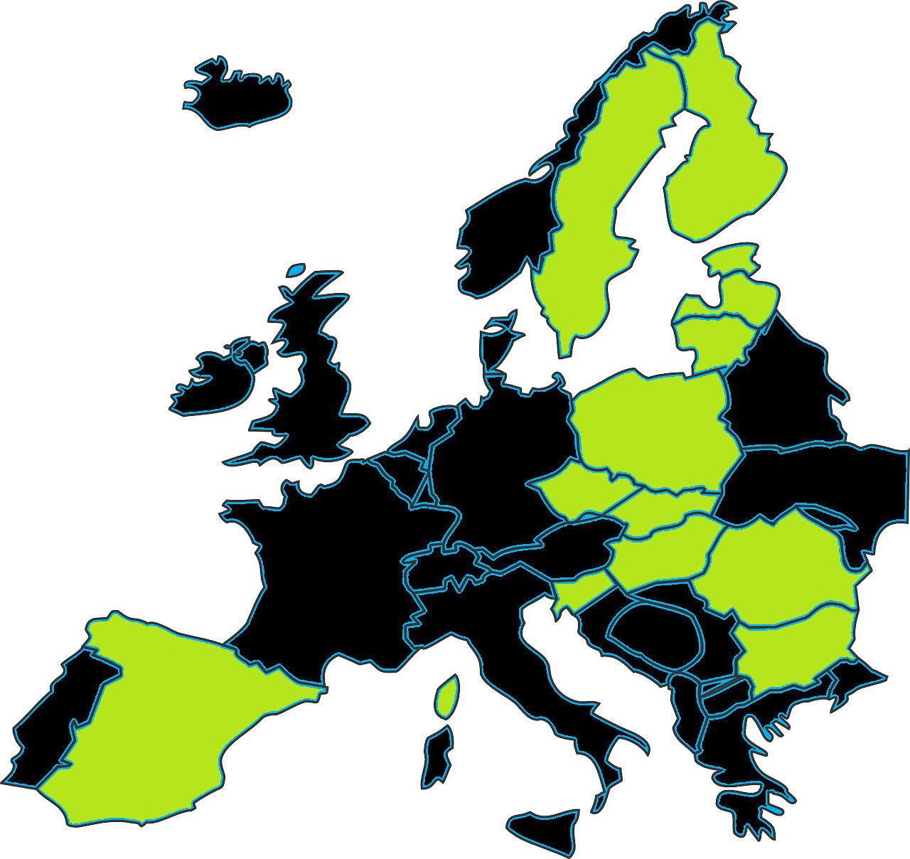Bulgarie, Corse, Espagne, Estonie, Finlande, Hongrie, Lettonie, Lituanie, Pologne, République Tchèque, Roumanie, Slovaquie, Slovénie, Suède